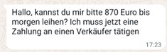 Aktuell tritt wieder vermehrt eine Betrugsmasche auf, bei der Täter auf fremde WhatsApp-Konten zugreifen. Dabei erhalten Betroffene häufig eine Nachricht von einem vermeintlich bekannten Kontakt, in der sie um Geld gebeten werden – meist unter einem dringenden Vorwand.
